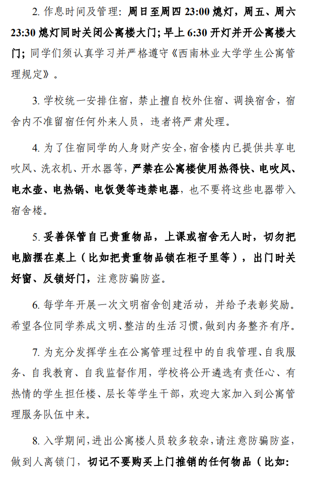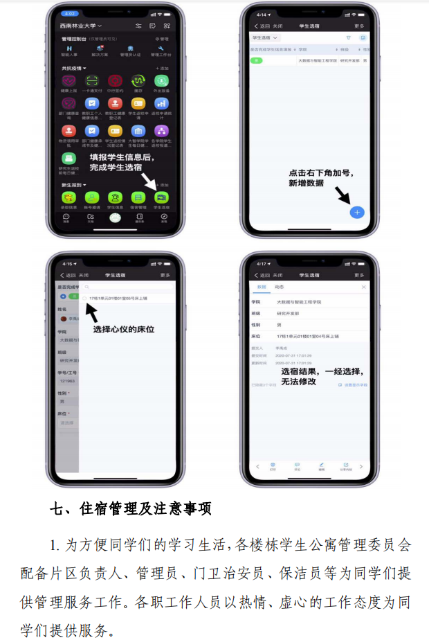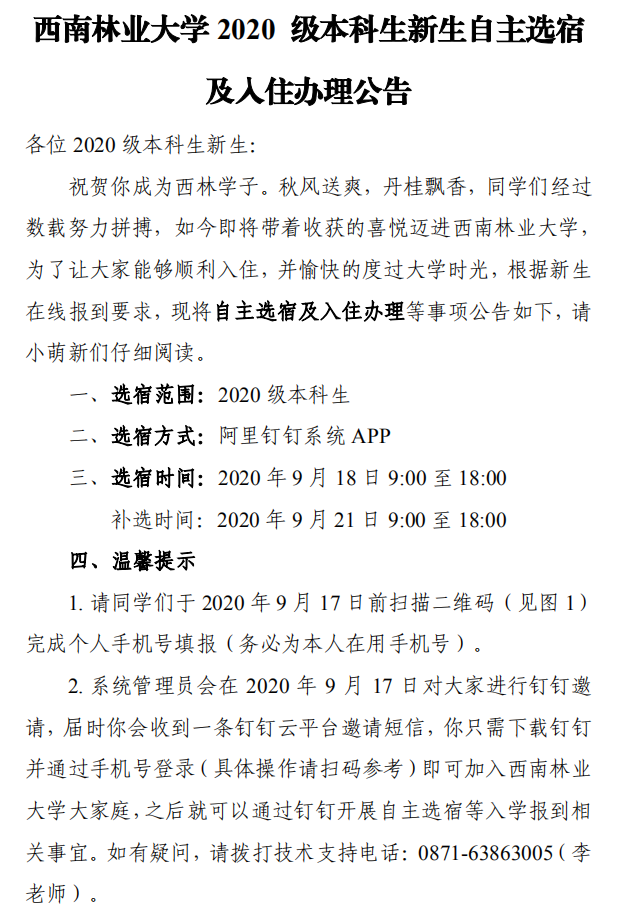 西南林业大学2020级本科生新生自主选宿及入住办理公告