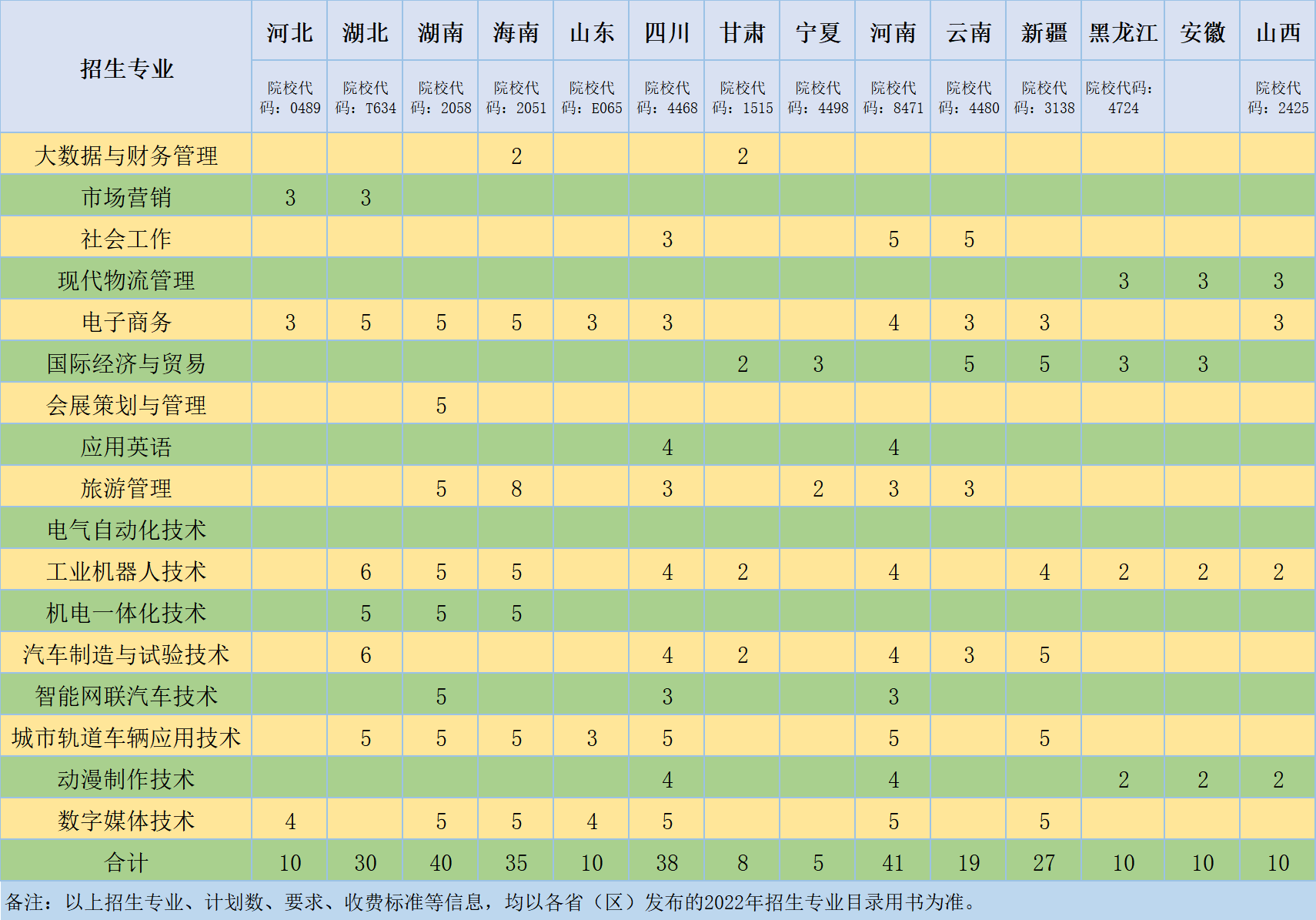 一、广东省2022年夏季高考招生计划