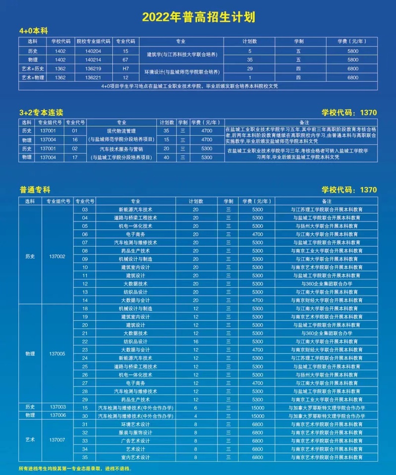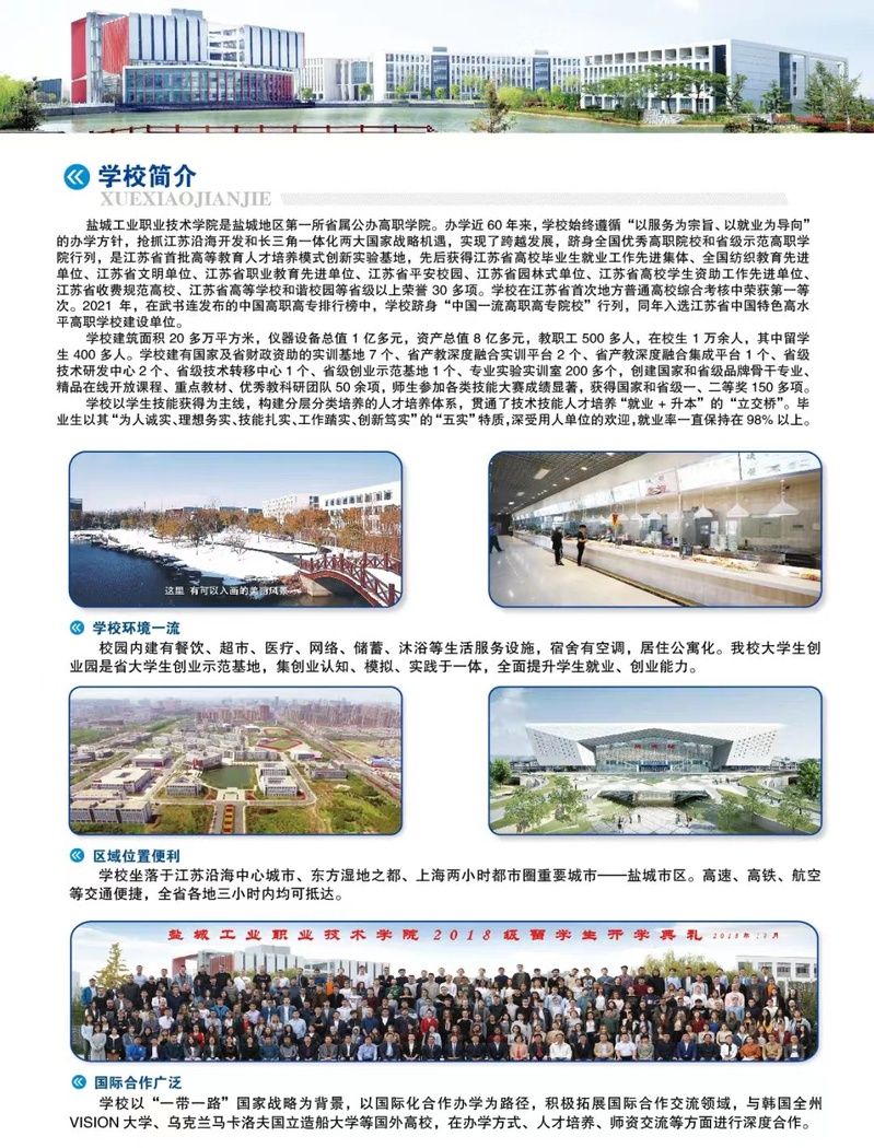 盐城工业职业技术学院2022年普高统招招生简章