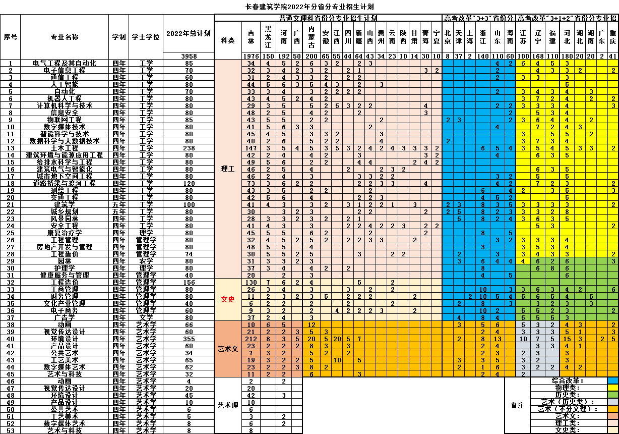 长春建筑学院2022年招生计划