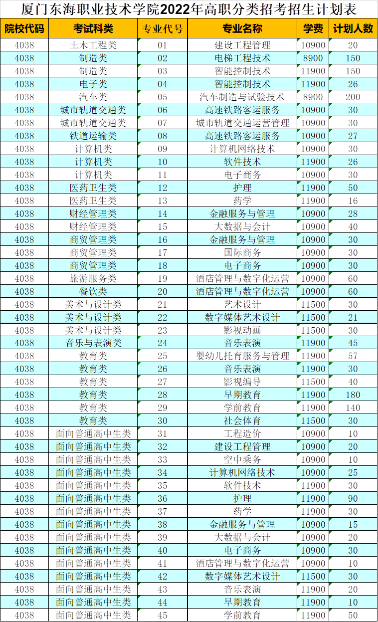 2022年高职分类招考招生计划表