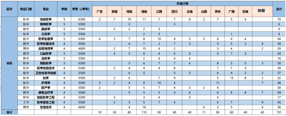 外省计划:2022年杭州医学院面向12个省份招生,计划招生701人,