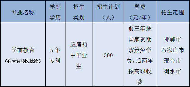 培养目标:本专业培养德、智、体、美全方面发展,具有良好职业道德和人文素养,掌握较系统的专业知识与专业技能,具备较强保育能力、活动设计与组织能力、实践反思与自我发展能力,善于沟通与合作,从事学前教育工作的教师。