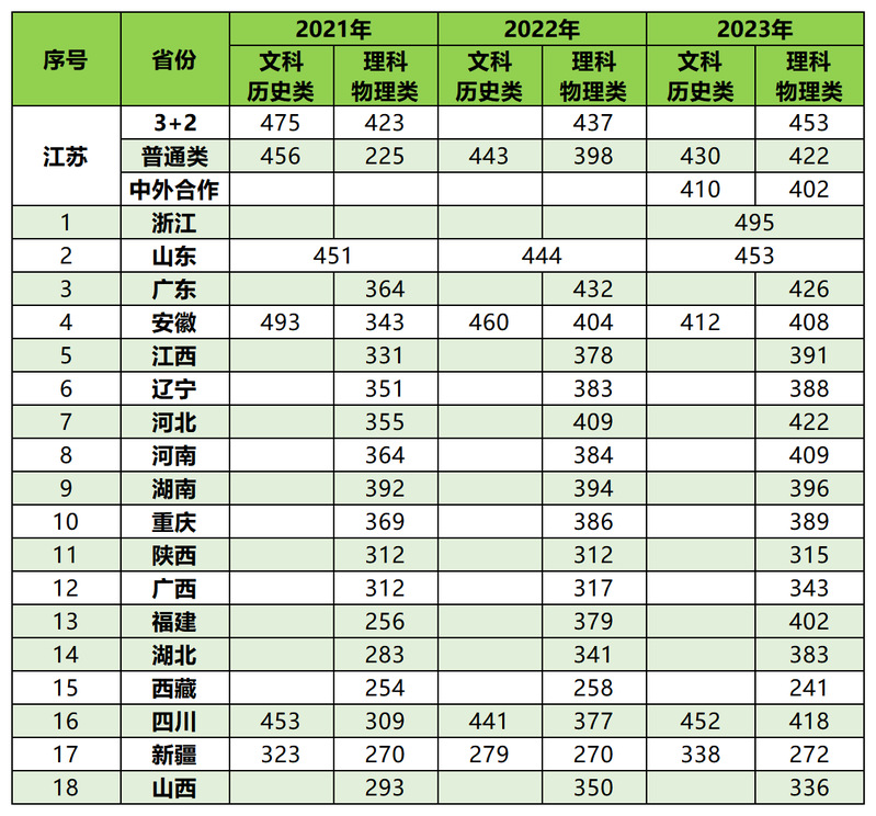 江苏医药职业学院2021-2023年各省录取分数线(征集前)