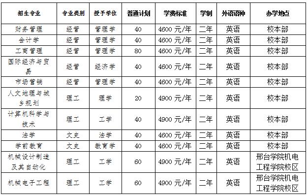 8.专业办学地址:除机械电子工程、机械设计制造及其自动化专业在邢台学院机电工程学院校区办学外,其余本科专业均在邢台学院办学。