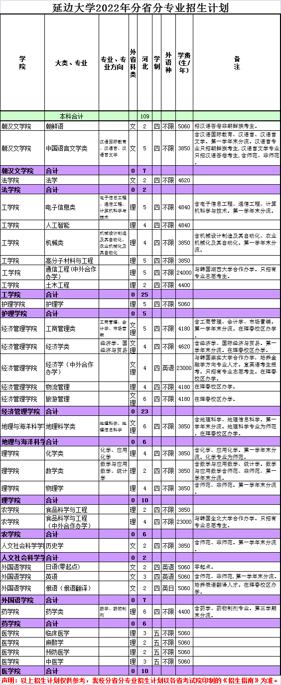 延边大学2022年河北省招生计划