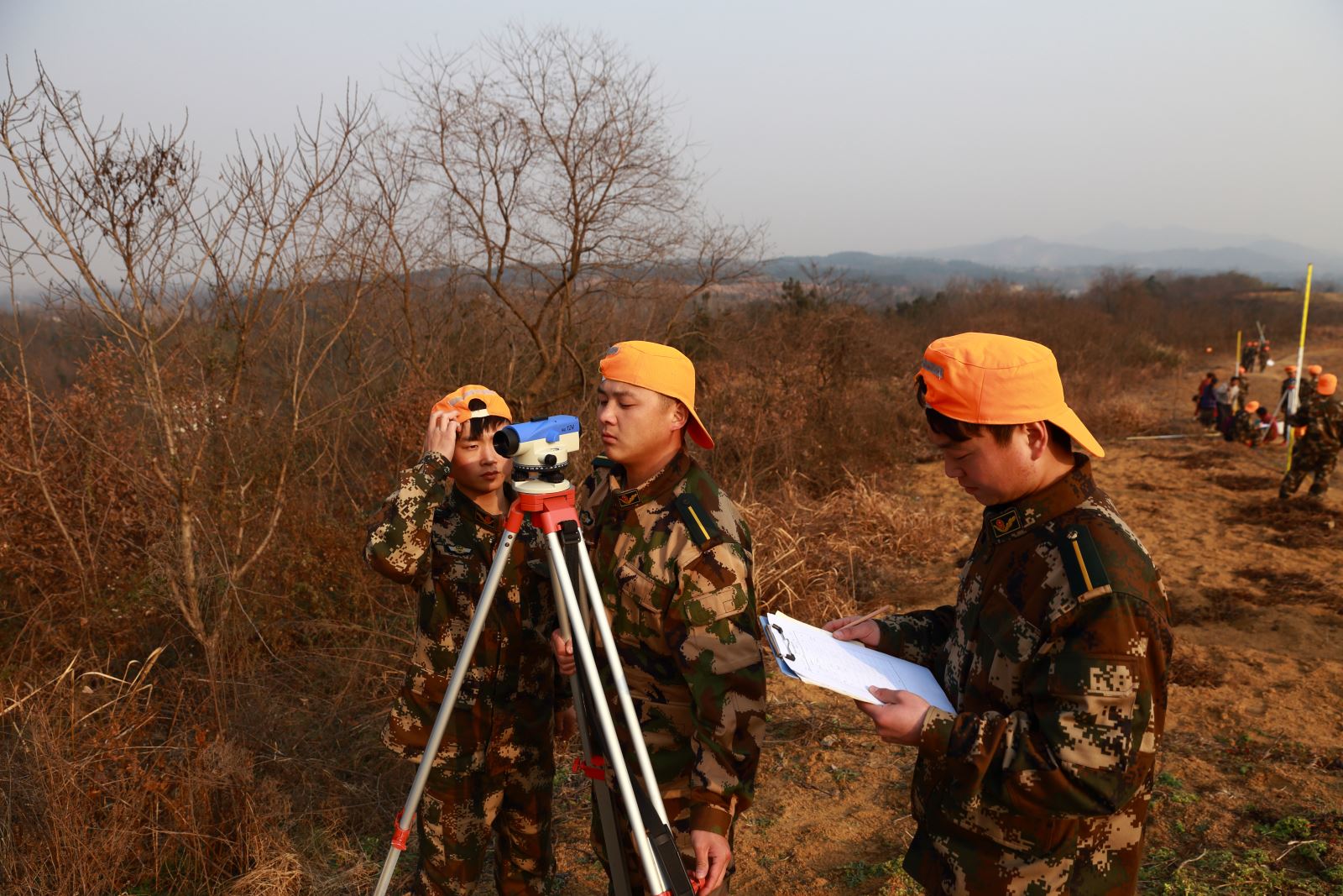 为武警部队定向培养的道路桥梁工程技术专业士官班正在测量实习