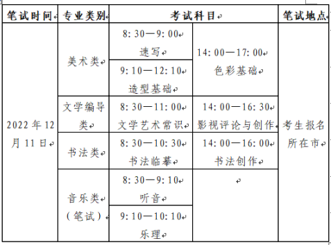 美术类、文学编导类、书法类专业采取笔试形式。